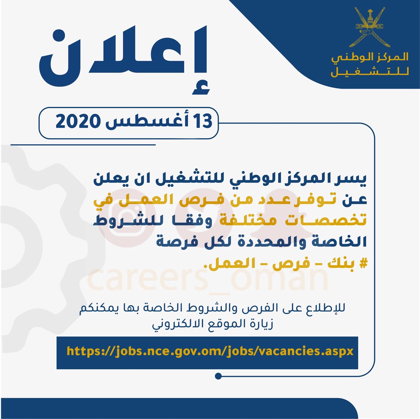 الخميس 13 8 2020 المركز الوطني للتشغيل Nce وظائف شاغرة