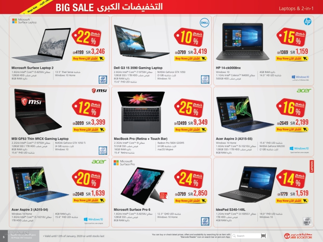 عروض مكتبة جرير Jarir الكبرى على الالكترونيات حتى 12 يناير 2020
