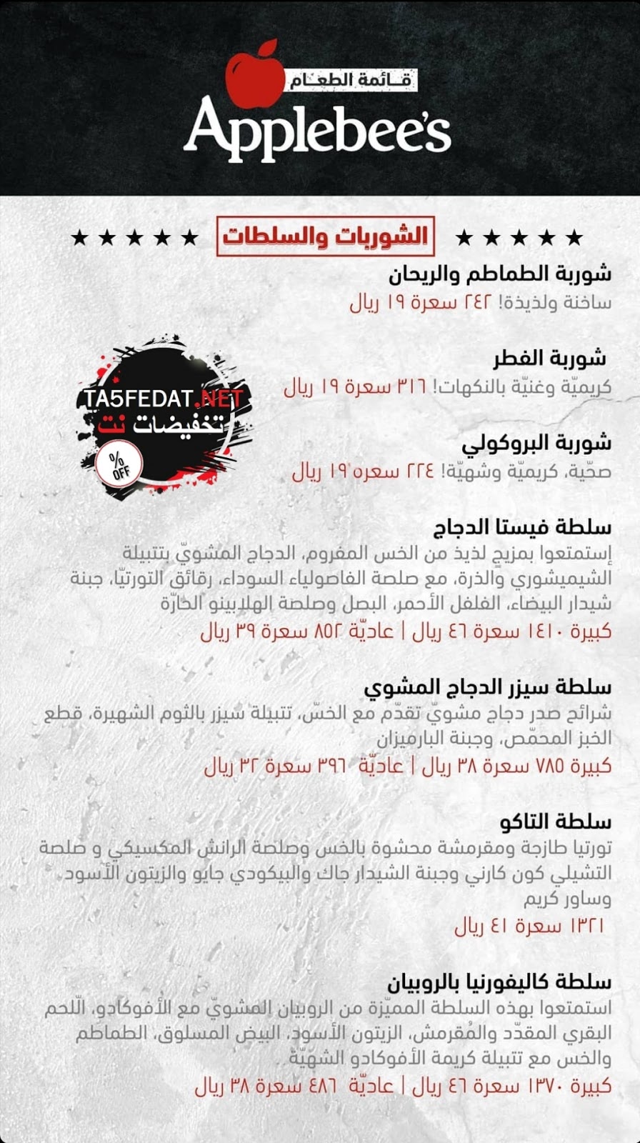 قائمة طعام منيو مطعم ابل بيز Applebee S