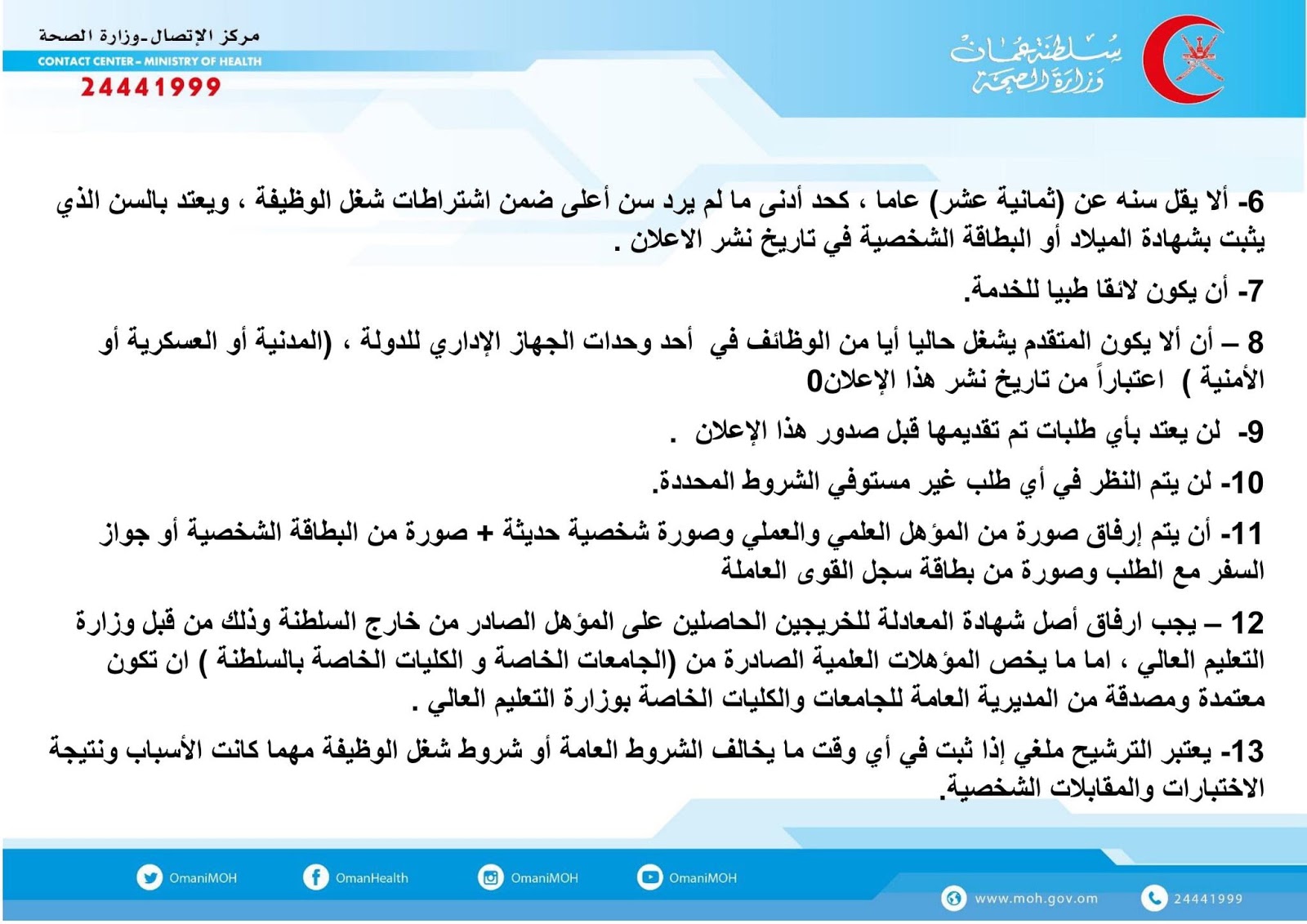 وظائف جديدة 2020 في وزارة الصحة العمانية للعمانيين